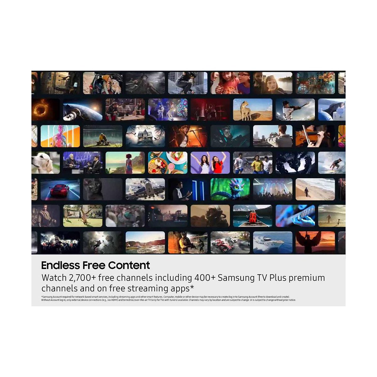 Watch 2,700+ free channels, including over 400 premium Samsung TV Plus channels and on free streaming apps with just an internet connection. With Samsung TV Plus, get live national and local news, sports, movies, music, kids' shows, K Content and reality TV all for free.
