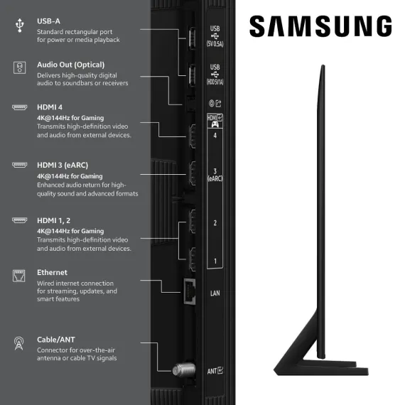 Elevate your entertainment with vivid visuals and dynamic audio tailored to your content. A color spectrum of over one billion shades brings scenes to life with distinctive contrast, highlighting details with precision. Plus, discover innovative personalized experiences with Samsung Vision AI* and also enjoy access to thousands of live TV channels, movies and shows - all for free - while Knox protects your confidential data.** *Samsung Vision AI features vary by model; see product specifications on Samsung.com for more info. **Personal data includes directly input PIN-codes and passwords, and IoT device information shared through the SmartThings app. The latest software is required.