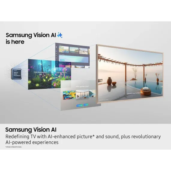 like a gallery frame, the TV for art lovers has access to curated works from top-tier galleries and museums* to blend into any style or décor. Samsung Vision AI* AI** powers superb picture, sound and personalized TV experiences. * Samsung Account log-in and Wi-Fi connection are required. Subscription is required to enjoy all the arts from the Art Store which offers 30 refreshed artworks monthly through Art Store Streams and over 70 ambient content supported complimentary throughout the year. **Samsung Vision AI features vary by model; see individual model for more info.