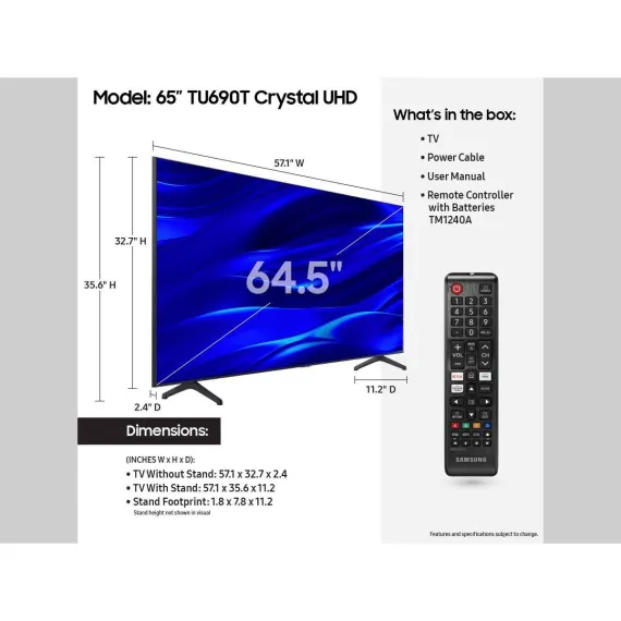 Samsung 65" Crystal UHD 4K Smart TV - (UN65TU690T)
