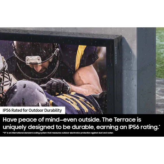 Forget curb appeal. With The Terrace Full Sun, from the Global No.1 TV brand*, it’s all about the backyard. Bring brightness* brightness**, AI technology*** and picture quality to your pool parties and game day group hangs. Impress your neighbors with our outdoor TV that has our highest rating (IP56) for durability against water and d ust , it makes it seamless to watch from the best seat outside of the house - so your oasis stays looking awesome all year long.
