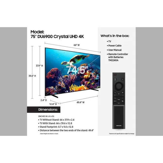 Samsung 75" Crystal UHD 4K Smart TV powered by Tizen (UN75DU6900)