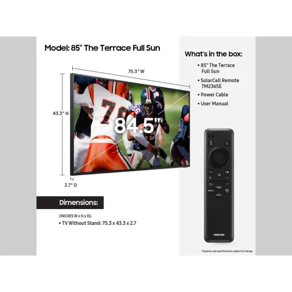 Samsung 85" class The Terrace Full Sun Neo QLED 4K Smart TV (QN85LST9C): 120Hz Refresh, Alexa Built-in, 3 HDMI