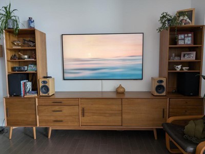 Samsungs most advanced Art TV blurs the lines between showpiece and entertainment for art and movie lovers alike. The modern slim-bezel frame matte screen and wireless connection allow you to create a clutter-free gallery experience at home featuring a selection of world-renowned artwork. Whether you're beholding a masterpiece or curling up to watch your favorite movie enjoy spectacular 4K Neo QLED picture and sound quality along with personalized TV experiences powered by Samsung Vision AI.
