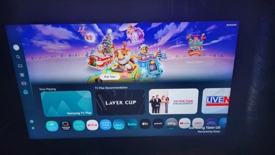 Samsungs Brightest Glare-Free 4K TVSamsungs best 4K AI processor powers Samsung Vision AI for enahnced picture sound and breakthrough TV experiences. Quantum Matrix Mini LEDs unlock bright detail on a glare-free screen for distraction-free viewing in the bright rooms. Top speakers provide multi-dimensional AI enhanced sound that tracks to on-screen motion.