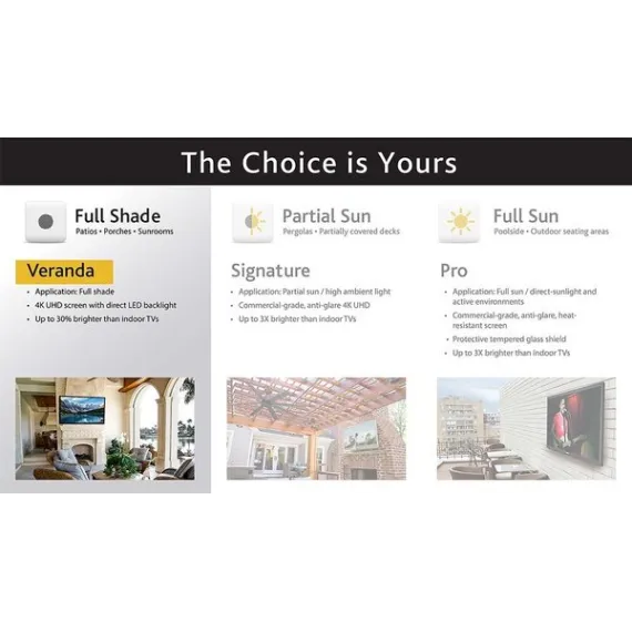 - VIVID ULTRA 4K SCREEN - The SunBriteTV Veranda Series offers a premium 4K UHD screen with direct LED backlight and is up to 30% brighter than indoor TVs to deliver a breathtaking, vivid picture in outdoor environments.