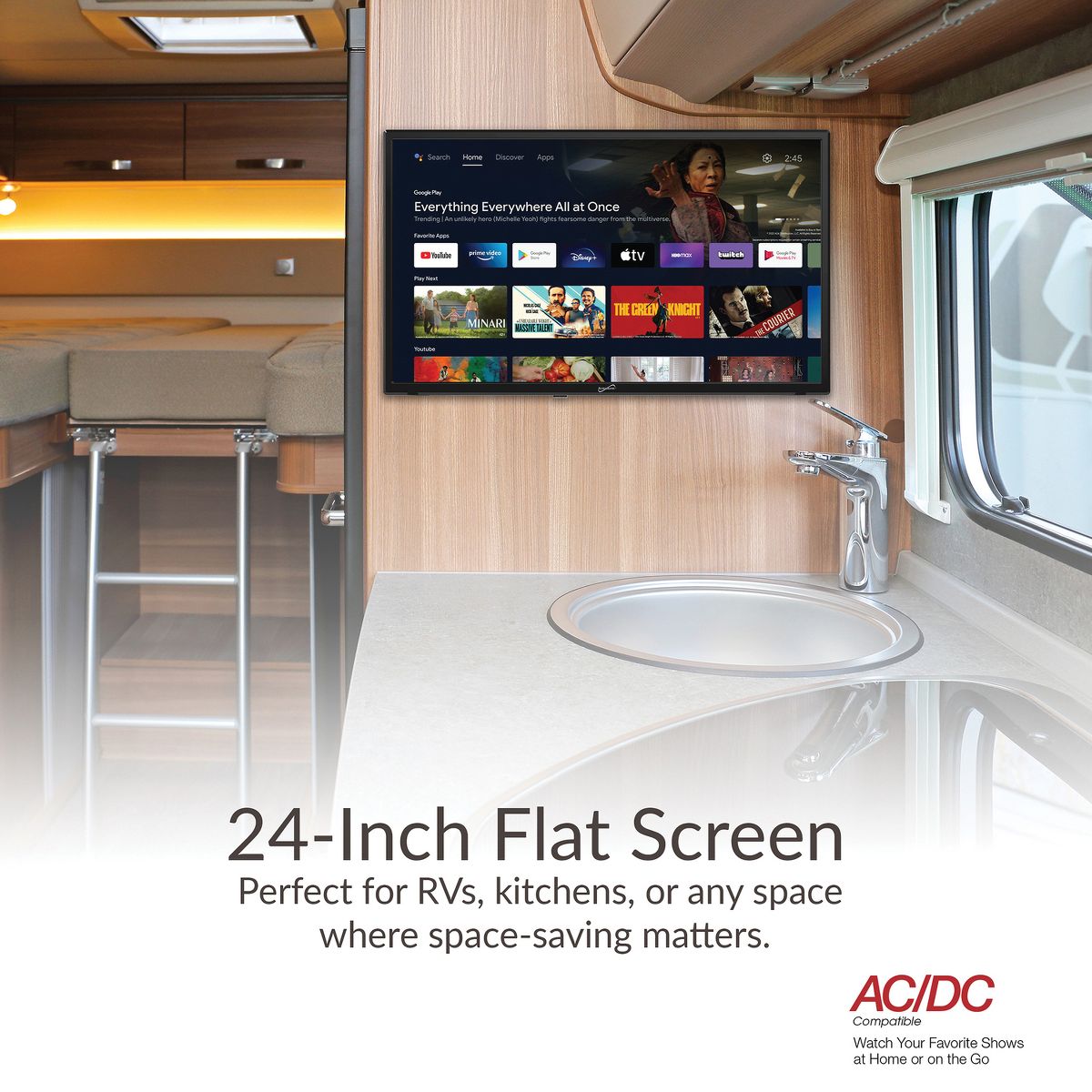 Supersonic® 24-In. 1366 x 768 LED Smart Android™ HDTV, AC/DC Compatible, SC-2450GTV in Black