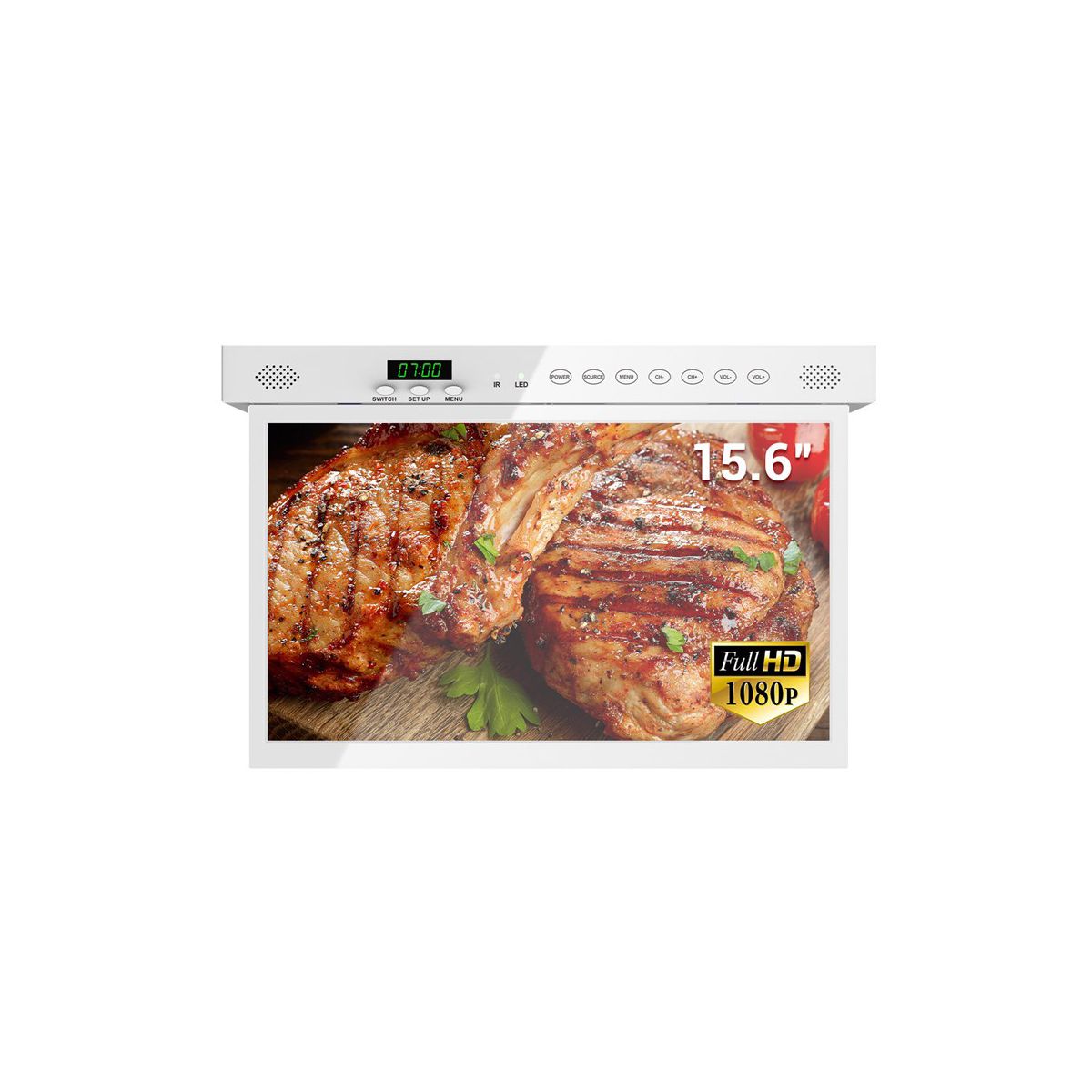SYLVOX 15.6 inch Smart Kitchen TV, 1080P FHD Under Cabinet TV, Smart Android TV Built-in Google Play, Support Google Assistant WiFi Bluetooth