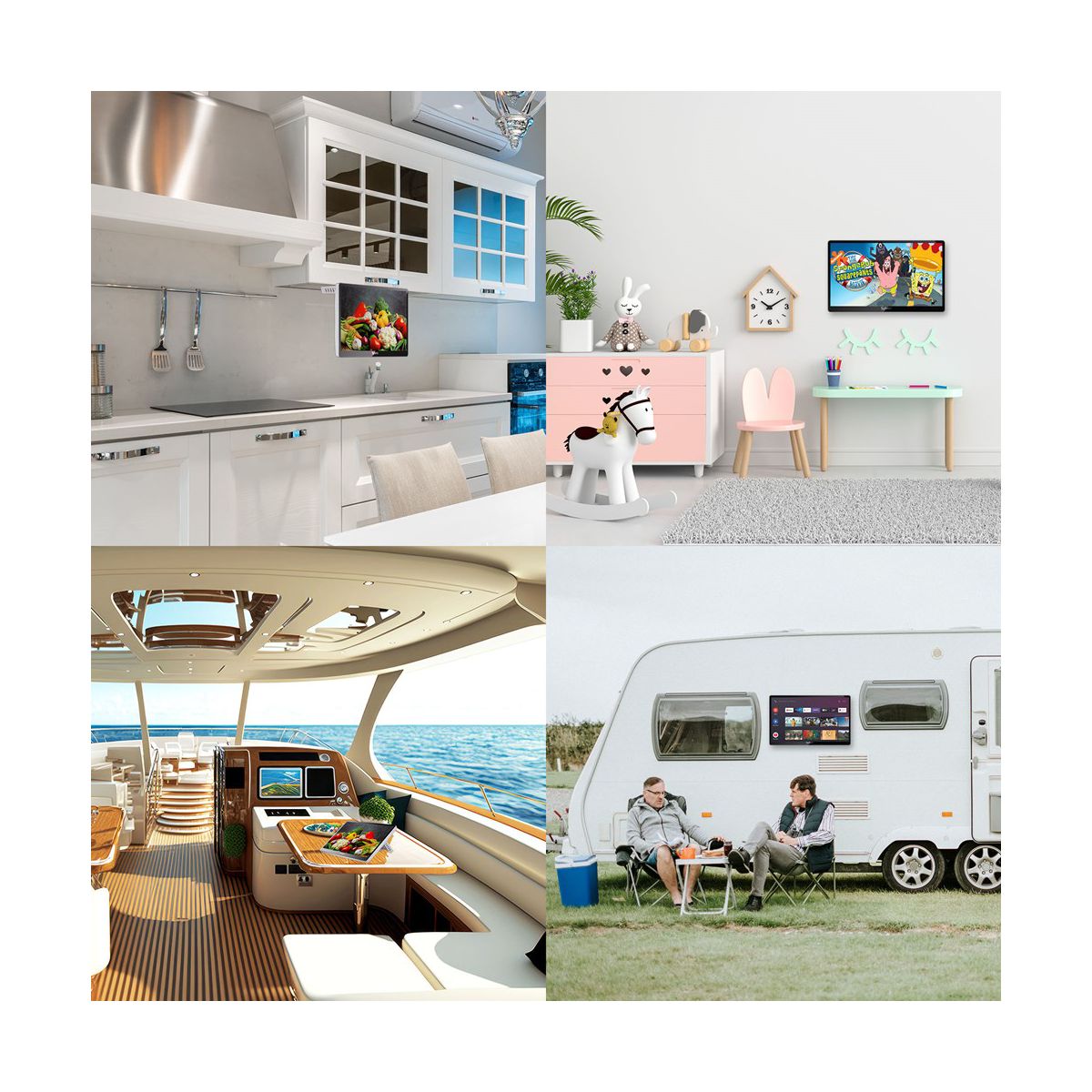The Sylvox Mini Kitchen TV is perfect for kitchens, featuring a screen that rotates 45° horizontally and folds 90° up or down. Enjoy stunning visuals with a 178° viewing angle and a 16.7M color 8-bit display. Its toughened glass offers excellent protection. Equipped with an ASTC tuner, it supports ARC and CEC connections. The 12V power supply ensures convenient use, even during RV travels.
