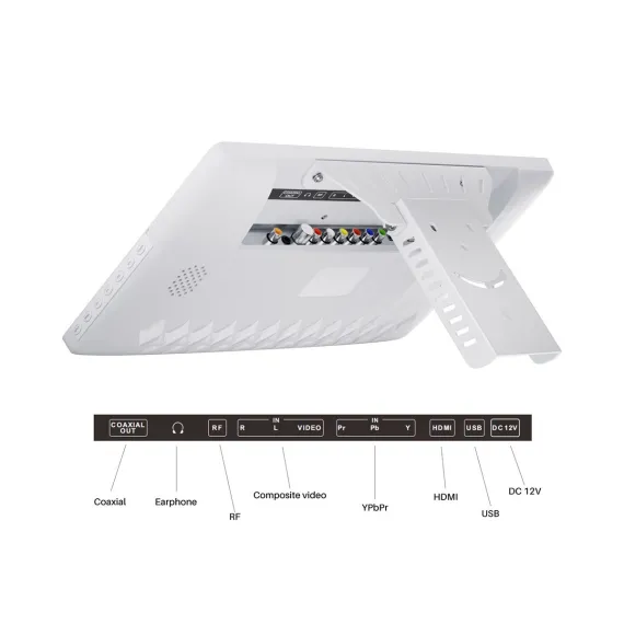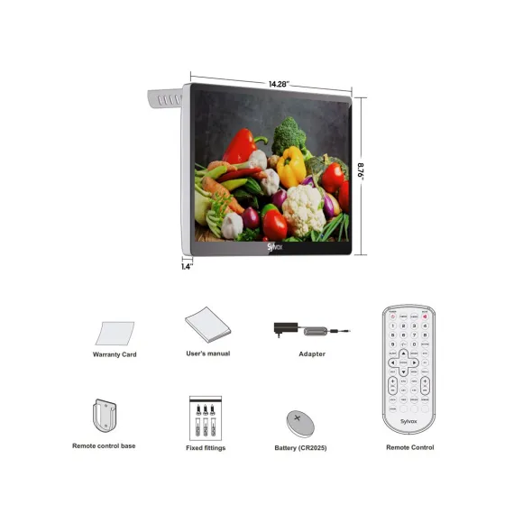 The Sylvox Mini Kitchen TV is perfect for kitchens, featuring a screen that rotates 45° horizontally and folds 90° up or down. Enjoy stunning visuals with a 178° viewing angle and a 16.7M color 8-bit display. Its toughened glass offers excellent protection. Equipped with an ASTC tuner, it supports ARC and CEC connections. The 12V power supply ensures convenient use, even during RV travels.