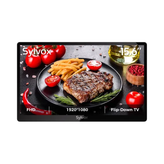 SYLVOX 15.6" Kitchen TV, 1080P Full HD Under Cabinet TV, Flip-Down TV with 90-Degree Rotation Folded, 12 Volt Small TV for Kitchen, RV Camper