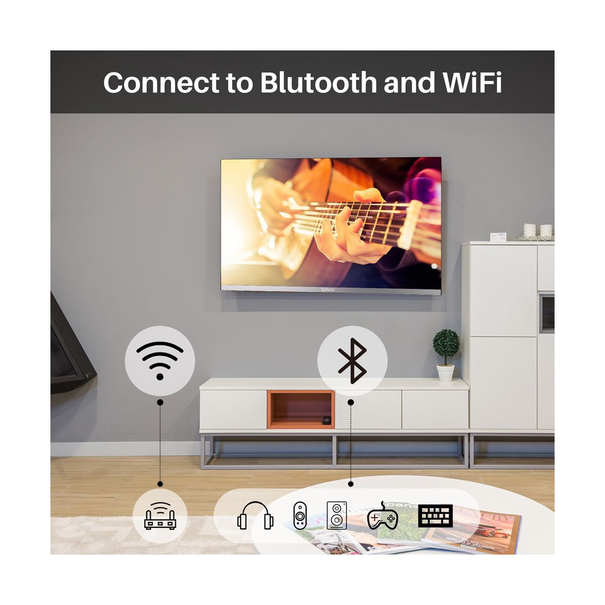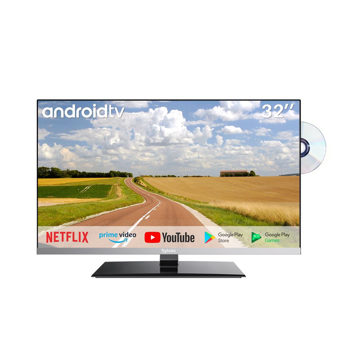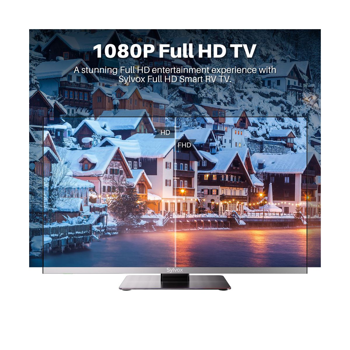 SYLVOX Limo Series 12Volt Smart RV TV designed to elevate your travel experience. Compatible with Google Play get all the top apps you want. Enjoy your favorite movies with the built-in DVD player, provide you 1080P FHD picture quality, tune in to FM radio, and immerse yourself with the HI-FI sound box. The multi-protection design ensures stability during RV travel and allows for flexible hanging or standing installation. From caravans to boats, bedrooms to kitchens, this versatile TV is a perfect fit for your on-the-go lifestyle. Experience entertainment on the road like never before with SYLVOX 12Volt RV TV.