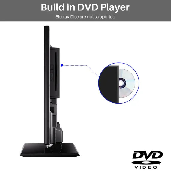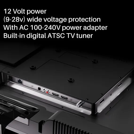 SYLVOX Limo Series 12Volt Smart RV TV designed to elevate your travel experience. Compatible with Google Play get all the top apps you want. Enjoy your favorite movies with the built-in DVD player, provide you 1080P FHD picture quality, tune in to FM radio, and immerse yourself with the HI-FI sound box. The multi-protection design ensures stability during RV travel and allows for flexible hanging or standing installation. From caravans to boats, bedrooms to kitchens, this versatile TV is a perfect fit for your on-the-go lifestyle. Experience entertainment on the road like never before with SYLVOX 12Volt RV TV.