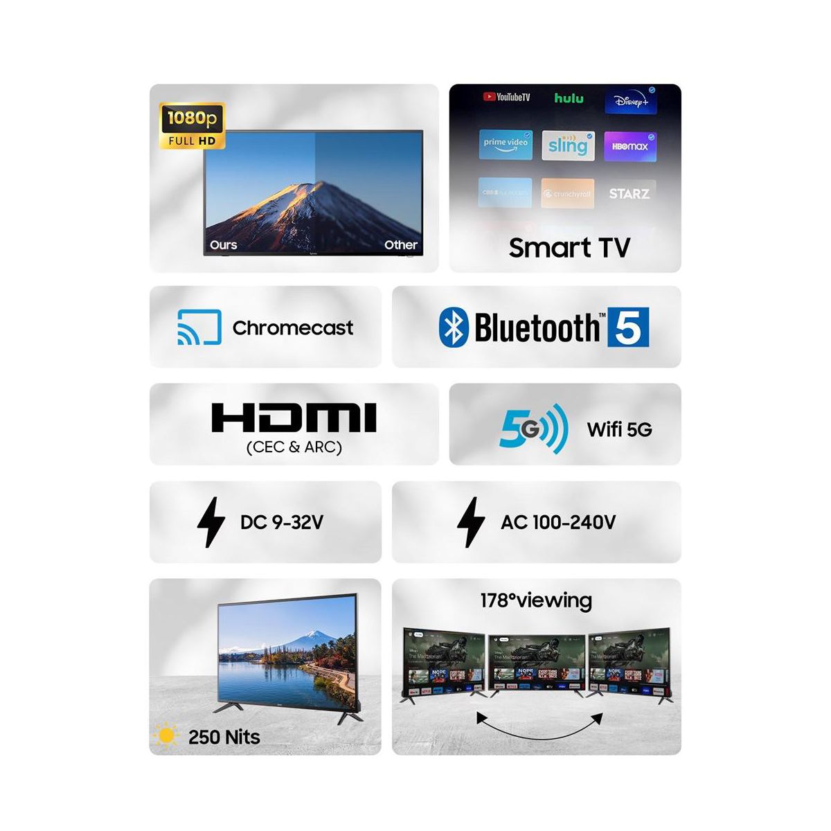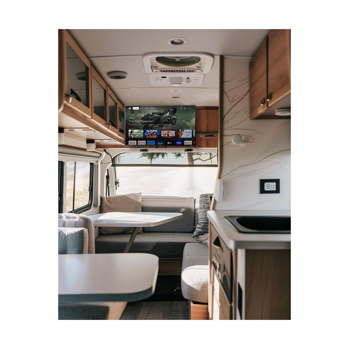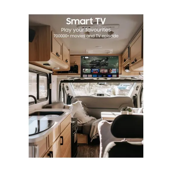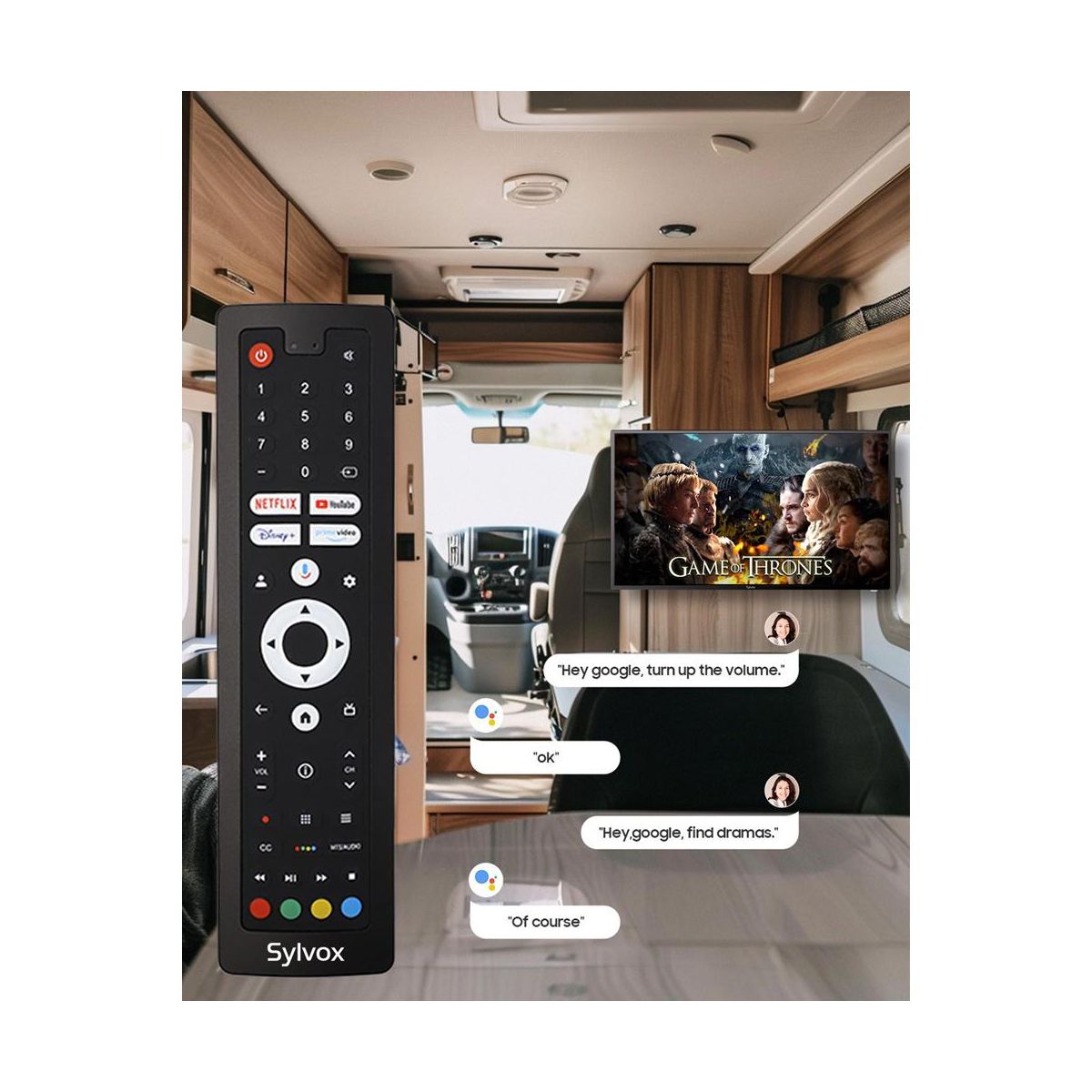 The Sylvox Vechiel series smart RV TV enhances your RV travels, seamlessly blending cutting-edge technology with user-friendly design for an unparalleled journey. Its crystal-clear 1080p Full HD resolution and built-in dual HiFi speakers deliver a high-quality audiovisual experience. Powered by Google's advanced operating system, it offers a seamless, intuitive user interface, Google Voice Assistant, and a companion voice remote for effortless navigation of your favorite cont