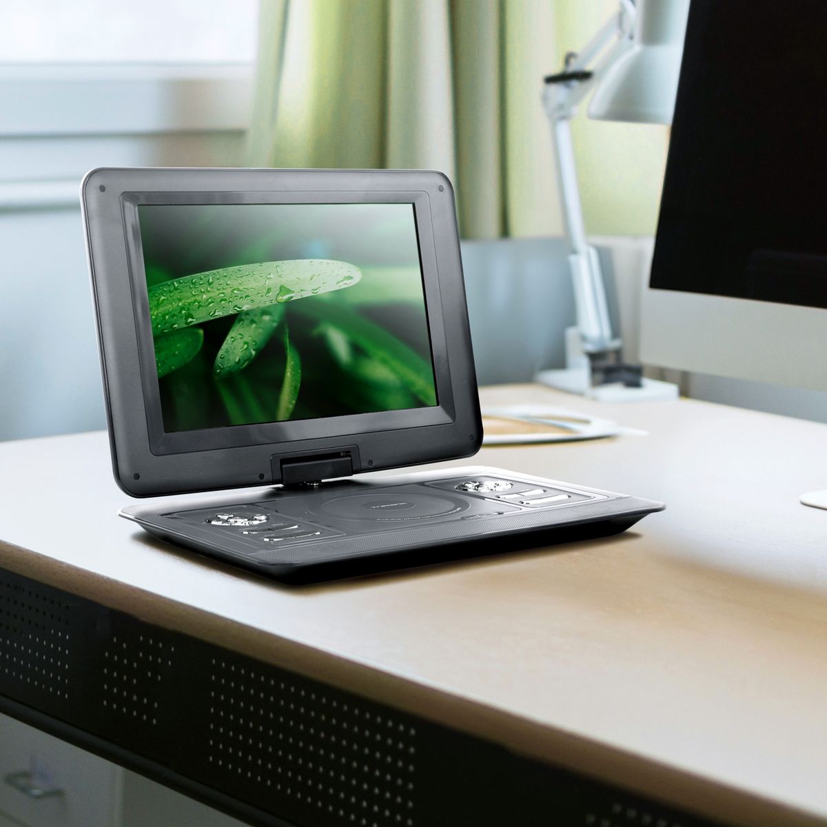 Find Your Own Angle! This convenient Portable DVD player offers you a 90 Degree rotation to the left and a 180 Degree rotation the right, allowing you to fully turn your screen, and even close the unit with the screen pointing out.