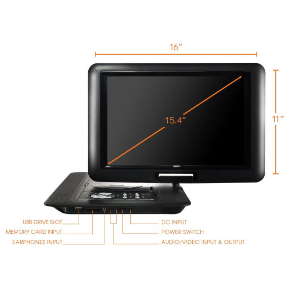 Trexonic 15.4 Inch Portable DVD Player with TFT-LCD Screen and USB/SD/AV Inputs
