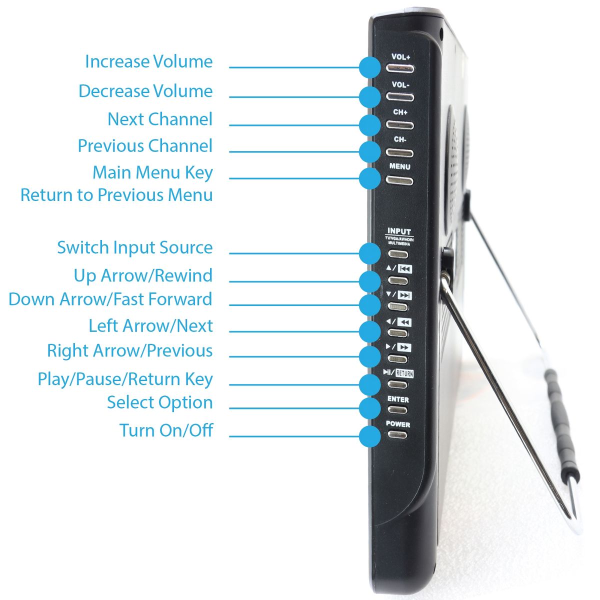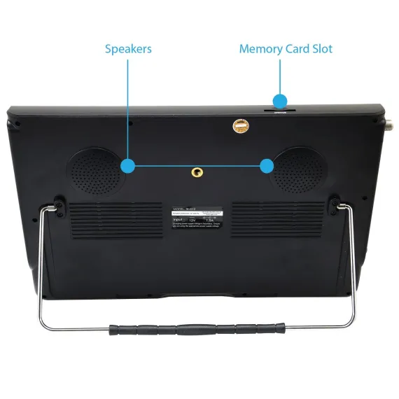 Visibility and Practicality: You can be sure that your new portable television will give you the best viewing angle possible with the hard mounted, sturdy adjustable back stand complete with an anti-slip textured panel. With a 12-inch LED Widescreen and 1280 x 800 Resolution you can be sure the picture will be as bright as your memories of all the adventures you can have with this wonderful portable TV.