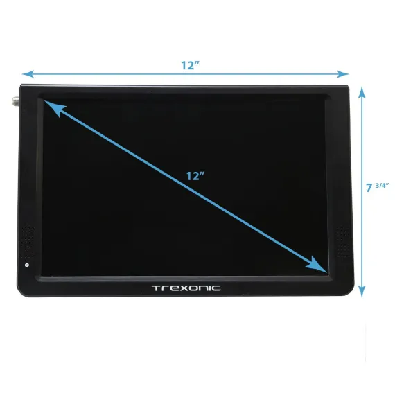 Trexonic Portable Rechargeable 12 Inch LED TV with HDMI, SD/MMC, USB, VGA, AV In/Out and Built-in Digital Tuner