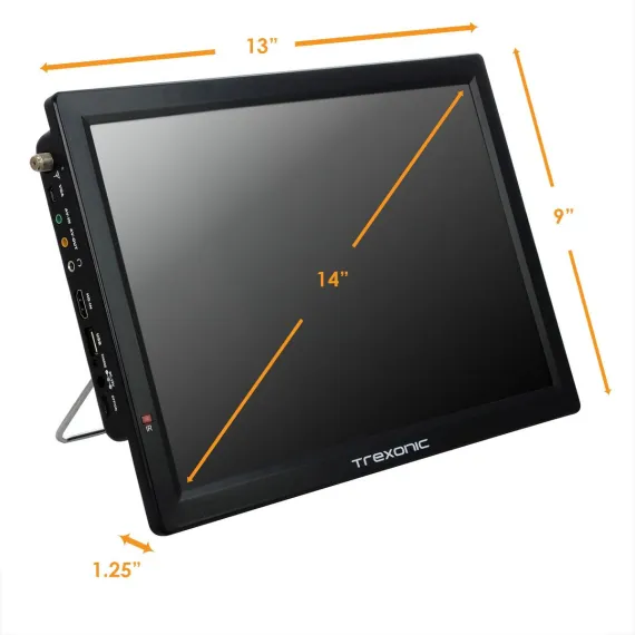 Trexonic Portable Rechargeable 14 Inch LED TV with HDMI, SD/MMC, USB, VGA, AV In/Out and Built-in Digital Tuner