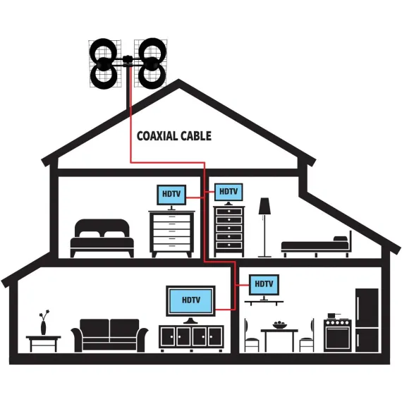 The Antennas Direct® ClearStream® 4 UHF indoor/outdoor HDTV antenna uses 4 of our patented loops to receive TV signals 70+ miles away from broadcast towers. This TV antenna offers enhanced reception of UHF broadcast television channels, thanks to reflectors which add forward gain and focus the antenna's power to protect the incoming TV signal from interference that causes pixelation or a complete loss of picture. It is ideal for rural or suburban areas where heavy foliage or roofing materials between your antenna and the TV towers can interfere with reception. It includes a 20-in. mast with pivoting base for installation on vertical or horizontal surfaces indoors, in an attic, or outdoors. If you had cable or satellite installed before, the coaxial cable needed to distribute signal throughout your home may already be installed - simply connect the ClearStream® 4 to the existing coaxial cable and you’ve got free local TV in crystal clear HD straight from the networks. Find your TV channels and towers on our website or using our free Antenna Point app on Android™ or iOS™ devices. Coaxial cable sold separately._