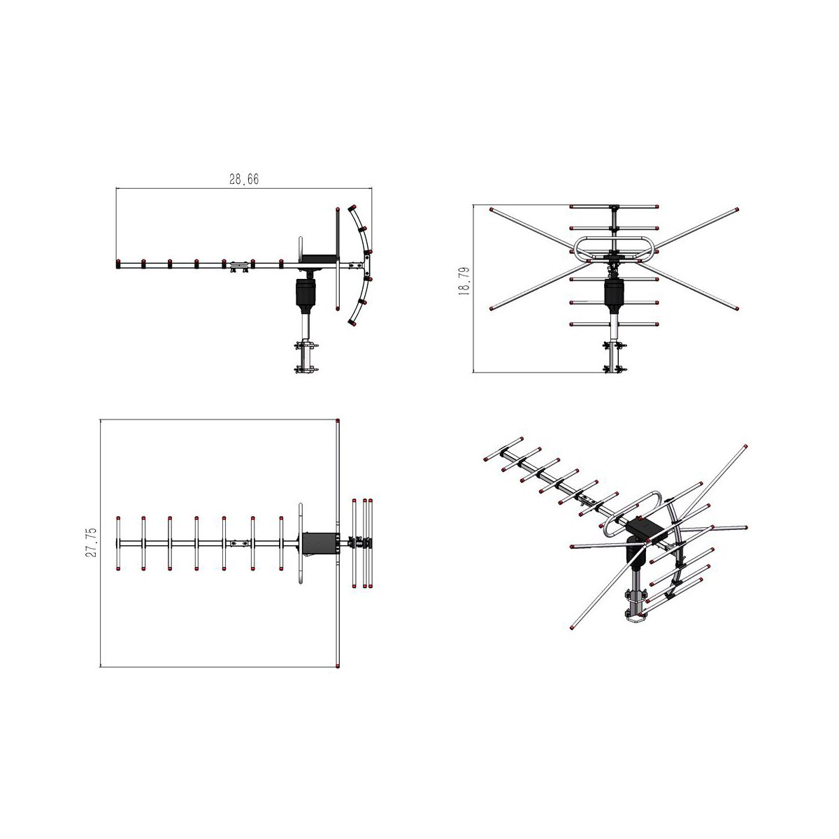 Are you intending to find a high quality open antenna? You are in the right place. This 360°Rotation UV 45-230MHz/470-860MHz 15-22dB Outdoorn Antenna is made of high quality plastic & aluminum material, durable and practical in daily use. With the light weight and compact design, it is easy for you to operate. And it supports 360°rotation which will provide a good signal. With low power consumption and environment friendly design, it is worth to buy it! So come and order it now!