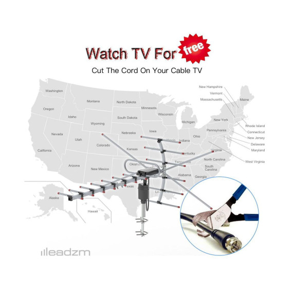 Karl Home 360-Degree Rotation UV UHF/VHF 15-22dB Outdoor Antenna Black 110 Miles