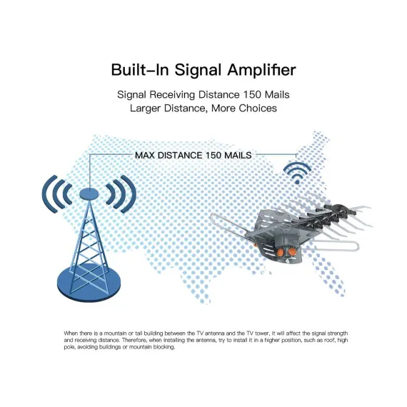 Karl Home Outdoor Amplified Antenna 360-Degree UHF/VHF 150 Miles Dovetail Guide without Stand
