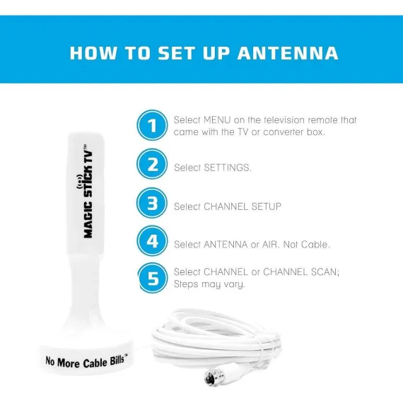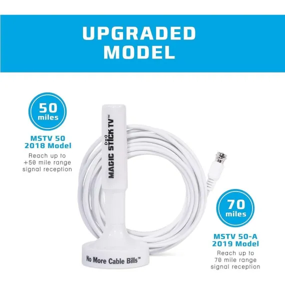 Magic Stick TV MS-50A Model - Antenna TV Digital HD - Built in Amplified Signal Booster Antenna Digital HDTV 1080P HD Channels, 16.5ft Cable