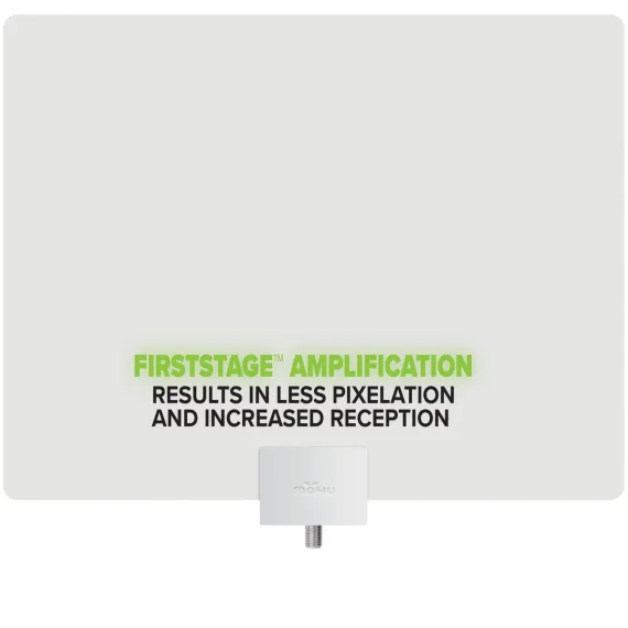 Launched in 2011, our Leaf® flat antenna design established the trend of ultra-thin indoor TV antennas. The Mohu Leaf® Plus has a 60-mile range, making it one of the most powerful amplified indoor HDTV antennas available. Amplification is located right at the base of the antenna where signal is at its best for less pixelation and enhanced reception. This modern digital antenna installs in minutes so you can easily enjoy free over-the-air broadcast TV in your area with the clearest picture quality possible. Engineered using technology developed in the USA, multi-directional UHF and Hi-VHF elements receive TV signals from both sides of the antenna, so you can show either side of the black or white reversible design or paint the Leaf® Plus antenna for a customized aesthetic. It includes 12 ft. detachable high-performance coaxial cable, giving you more flexibility to place on a wall or window for optimal reception. Connect the USB power injector directly to your TV’s USB port. It is ideal for compact living spaces like apartments, dorms, or single-TV homes. The antenna receives OTA DTV broadcasts in Full HD 1080p, UHD 4K, 8K, NEXTGEN TV depending on your coverage area. Visit our website to find your free TV towers and channels._