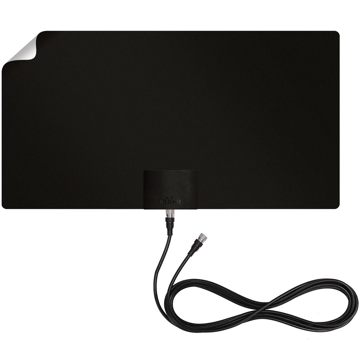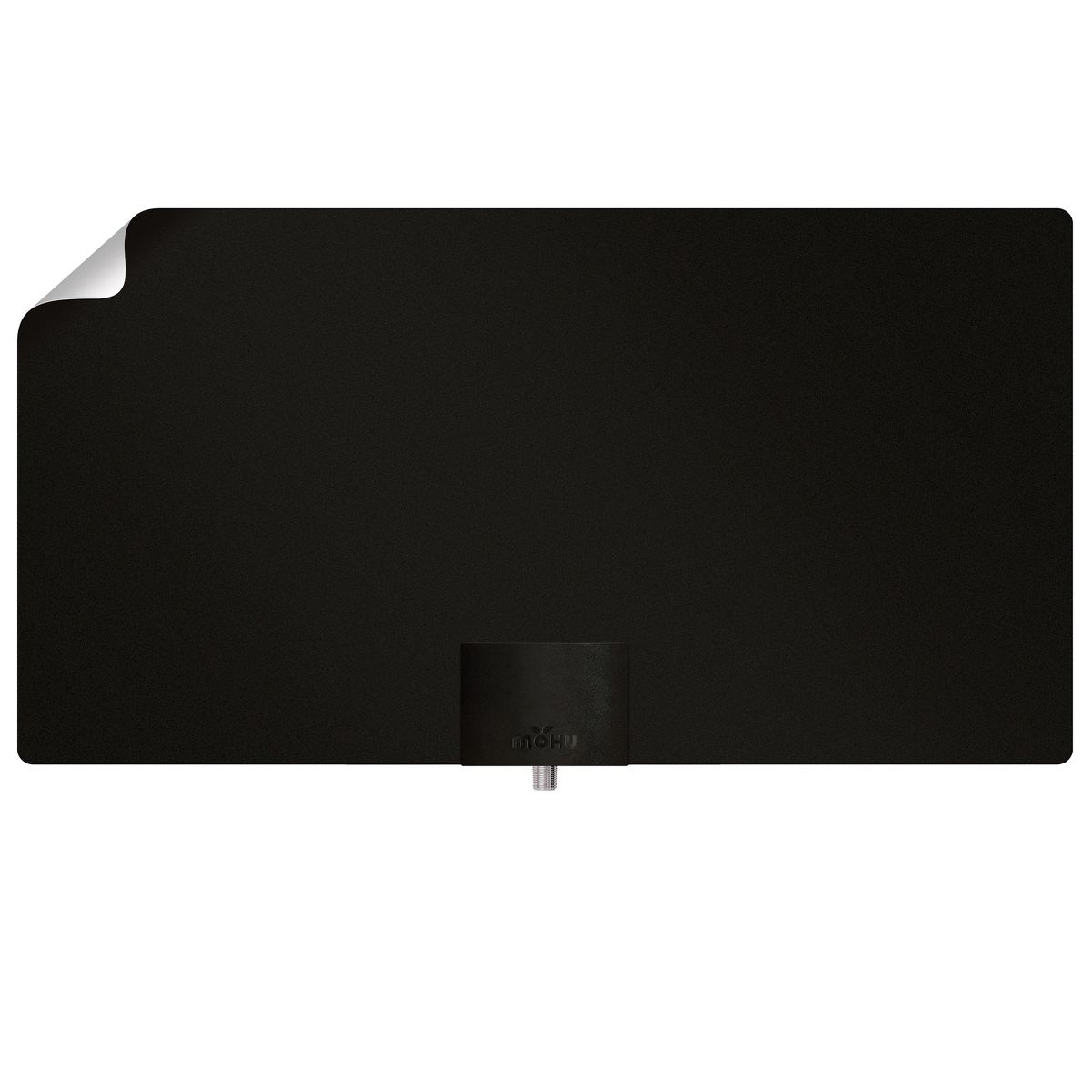 Mohu Leaf Supreme PRO Paper-Thin Indoor TV Antenna, Amplified, UHF VHF, 65-Mile Range, Multi-Directional, with 12-Ft. Cable, Signal Indicator in Black