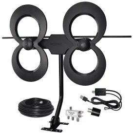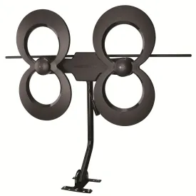 The antenna’s contemporary loop design with adjustable chrome dipoles blends nicely into your home theater setup and provides quality VHF and UHF reception for the best signal possible up to 30 miles from the broadcast source. Simply place the antenna on your TV stand or a nearby shelf and connect it to your TV’s cable input with the included 4ft. coax cable. Adjust the rabbit ear dipoles to get the best reception and run a channel scan for over-the-air channels on your TV. It’s that easy! Just be sure to run a channel scan any time you adjust the dipoles or move the antenna.