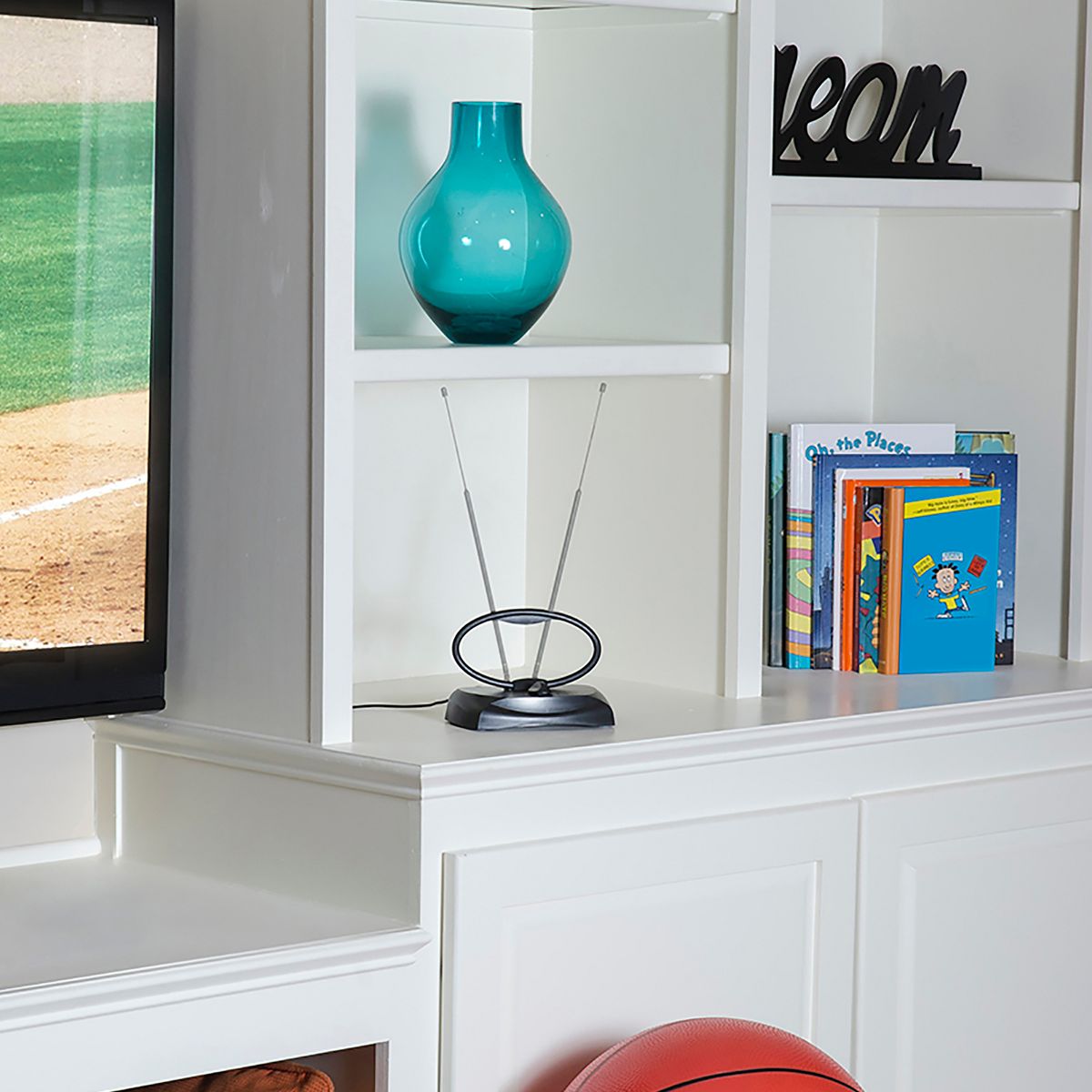 Enjoy HDTV network programming and your favorite shows for free, with no monthly fees, subscriptions, or contracts. This Indoor HDTV Antenna from RCA features a 12-position switch that fine-tunes reception for the best picture quality. Its integrated loop and extendable dipoles ensure you can receive most local channels with ease. The 6-ft. built-in coax cable provides flexibility in placement, while no-scuff pads protect your furniture’s surface from damage. NextGenTV™ (ATSC 3.0) compatibility guarantees stunning 4K Ultra HD picture quality and immersive movie theater-quality sound. It’s a great complement to streaming players and serves as a dependable backup television source when storms knock out cable or satellite service._