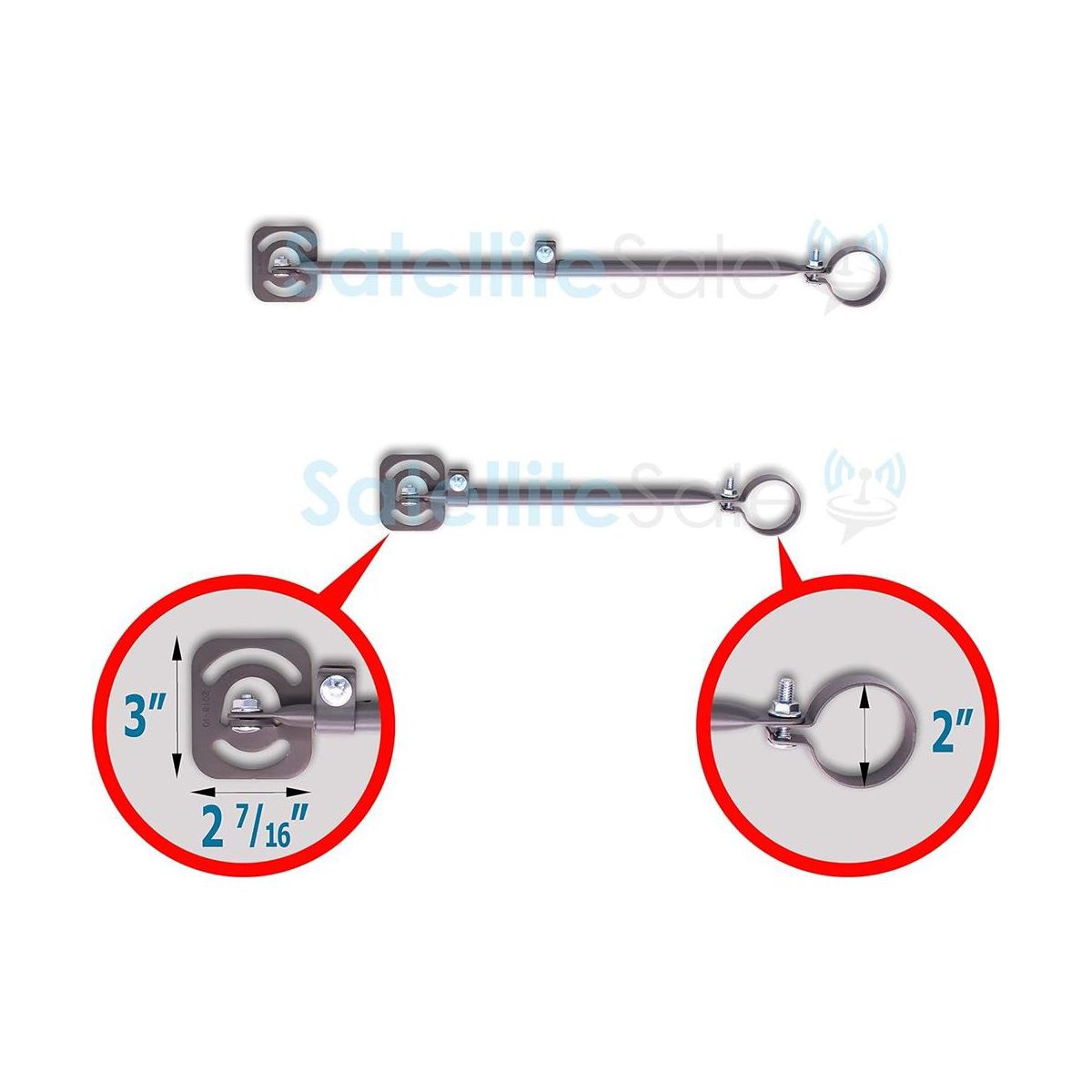 Brand new SatelliteSale Universal J Pipe Antenna Mount 2″ Outdoor With Monopoles is commonly used for wall and roof installation. It comes with 2 various telescopic adjustable monopoles to provide even greater support. The shorter monopole length is a minimum of 11 inches and 20 inches maximum. The longer one is min. 17 inches and max 31 inches long. Unlike other J pipe antenna masts sold as alternatives, our heavy-duty roof antenna mount weighs 8 pounds, supporting even the heaviest satellite dishes and antennas up to 30 pounds. At the same time, rubber pitch pads and powder-coated surface are provided for long-lasting and weatherproof performance. They function as caulking when placed in between the mast and the mounting base, and prevent moisture penetration. Built-in bubble level ensures proper alignment. All necessary mounting screws are also included. Our Universal Antenna Mast is a great choice for DirecTV satellite dishes and other antennas such as OTA, off-air antennas, weather station antennas, radio station antennas, wireless signal boosters. Furthermore, we assure the lifetime service of each SatelliteSale Universal J Pipe Antenna Mast to deliver a positive experience to our clients. What is in the box: