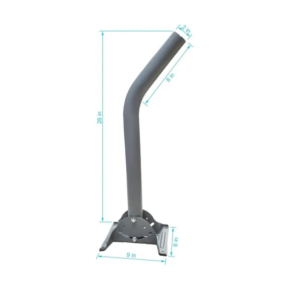 Brand new SatelliteSale Universal J Pipe Antenna Mount 2″ Outdoor With Monopoles is commonly used for wall and roof installation. It comes with 2 various telescopic adjustable monopoles to provide even greater support. The shorter monopole length is a minimum of 11 inches and 20 inches maximum. The longer one is min. 17 inches and max 31 inches long. Unlike other J pipe antenna masts sold as alternatives, our heavy-duty roof antenna mount weighs 8 pounds, supporting even the heaviest satellite dishes and antennas up to 30 pounds. At the same time, rubber pitch pads and powder-coated surface are provided for long-lasting and weatherproof performance. They function as caulking when placed in between the mast and the mounting base, and prevent moisture penetration. Built-in bubble level ensures proper alignment. All necessary mounting screws are also included. Our Universal Antenna Mast is a great choice for DirecTV satellite dishes and other antennas such as OTA, off-air antennas, weather station antennas, radio station antennas, wireless signal boosters. Furthermore, we assure the lifetime service of each SatelliteSale Universal J Pipe Antenna Mast to deliver a positive experience to our clients. What is in the box: