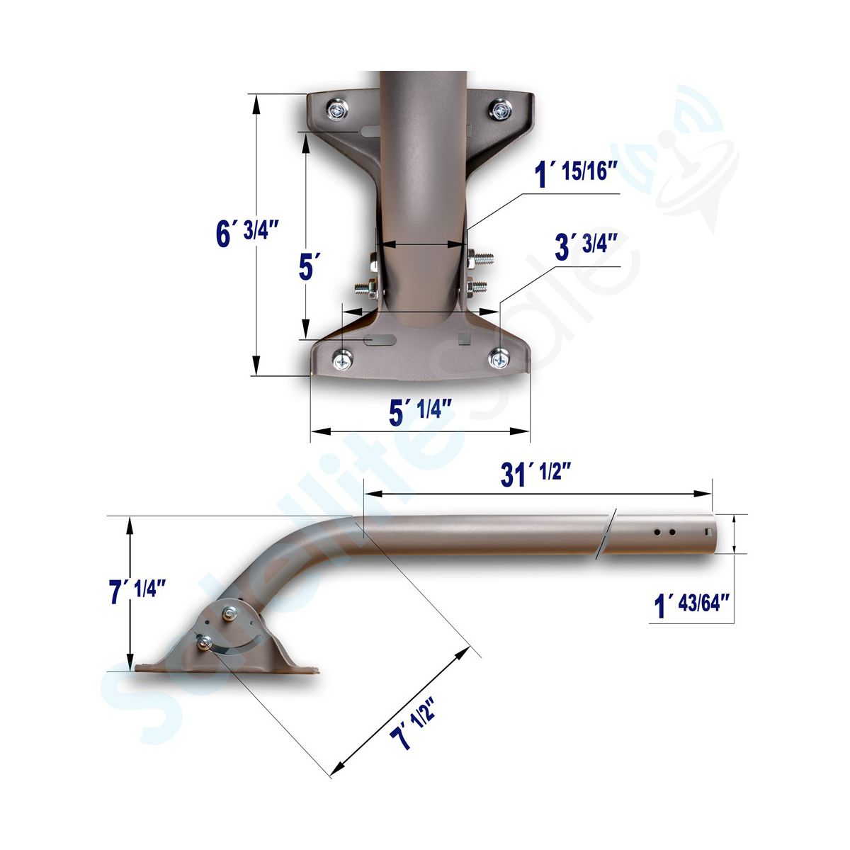 Starlink J-Pipe Mount Kit Compatible with V2 Rectangular Dish by SatelliteSale 39 inches Long