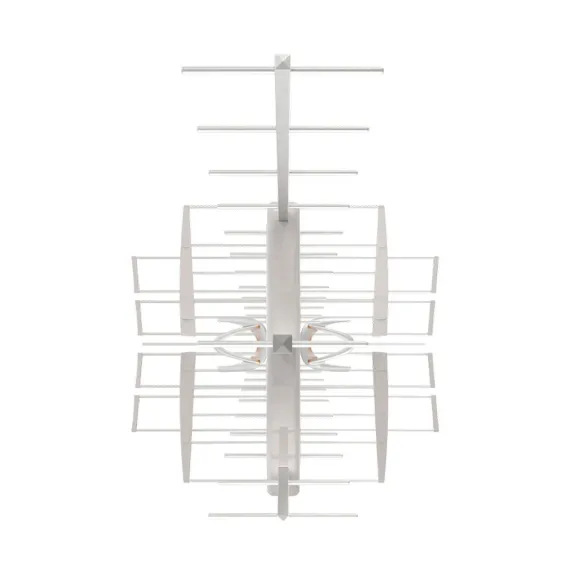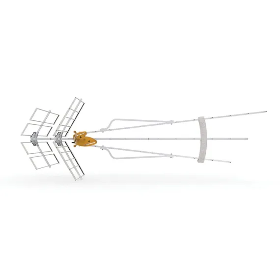 The Televes® DAT BOSS LR Mix is a state-of-the-art long-range over-the-air TV antenna that automatically adapts its gain in real time to optimize the reception of television signals, ensuring the optimum level of signal is delivered at all times. The antenna has been designed from the ground up for US broadcast frequencies, significantly improving gain and range over previous generations, filtering any interfering 5G signals above 608 MHz, and providing independent amplification for the VHF and UHF bands. The DAT BOSS LR Mix is able to receive very weak distant signals while at the same time avoiding overload caused by very strong signals. This is a very high-gain directional antenna designed to offer stable and high quality reception of UHF and high VHF signals only (RF channels 7-36) in challenging long-range and fringe receiving scenarios despite continuous changes in weather and transmitting conditions thanks to its exclusive and intelligent built-in TForce amplifier. The stacked triple boom design ensures market leading raw gain while still maintaining a compact and install friendly form factor. The DAT BOSS LR Mix includes the tools needed for assembly. No additional preamplifier purchase is required as the antenna includes a best-in-class very low-noise TForce preamplifier built in right at the dipole with automatic gain control, plus FM and cellphone signal filtering adapting to any installation situation. A low-consumption UL®-listed power supply is included providing 2 outputs for convenient distribution to additional TV sets._