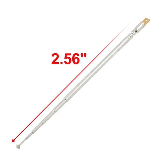 This antenna consists of 6 retractable sections with a total length of 65 cm. You can adjust the length of the antenna as needed for better signal reception. Perfect replacement part for radio equipment, television, car antennas, phone antennas, etc. The antenna is easy to install, simply plug it into the antenna hole of your radio, TV or other device. The total length is 65cm, you can adjust the length of the antenna as needed for better signal reception. The antenna is able to maintain stable performance over a long period of time and is not easily damaged.