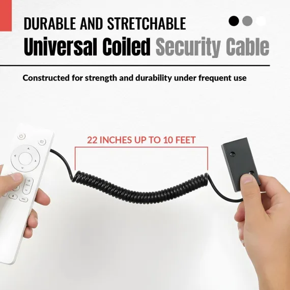 The Anderic CBL02 Universal Coiled Security Cable is the perfect solution for keeping your remote controls secure and always within reach. Designed for both residential and commercial environments, this durable and stretchable cable helps eliminate the hassle of lost or misplaced remotes.