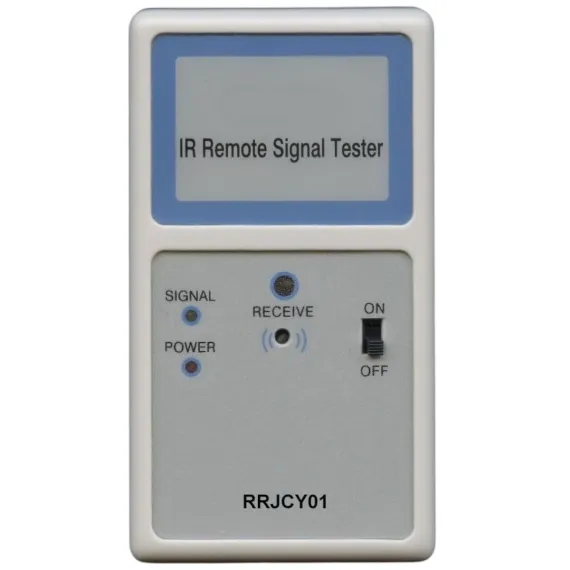 Test your remote controls to see if they are giving a signal. This unit is a great handheld tester for use with all IR (Infra-Red) remote controls. To use, simply turn on the RRJCY01, aim remote towards it, and press buttons on remote. The RRJCY01 will light up and make a noise if signal is detected. IR Remote Control Tester.