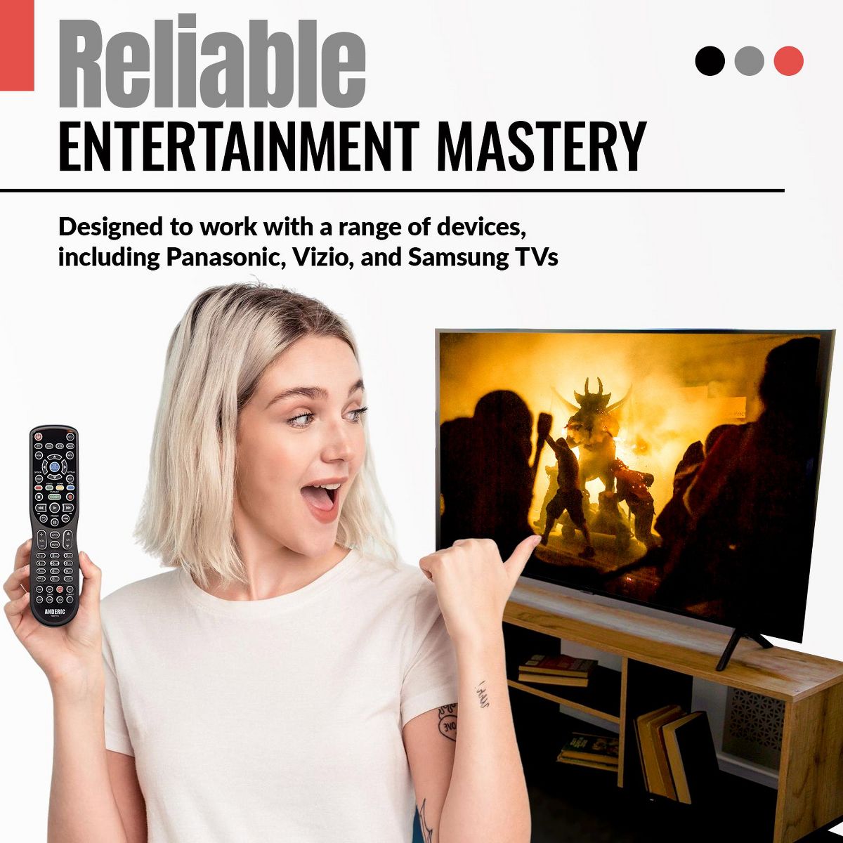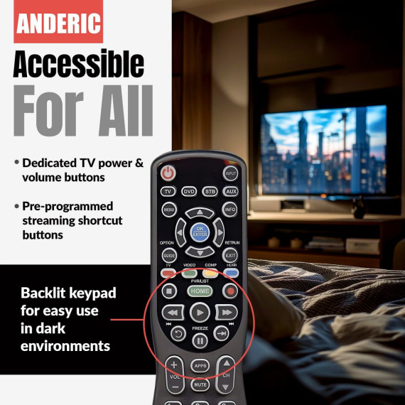Anderic RR0777S Universal 4-Device Remote Control for Pre-programmed for Panasonic Smart TVs with Learning and Backlight | N2QAYB000777S