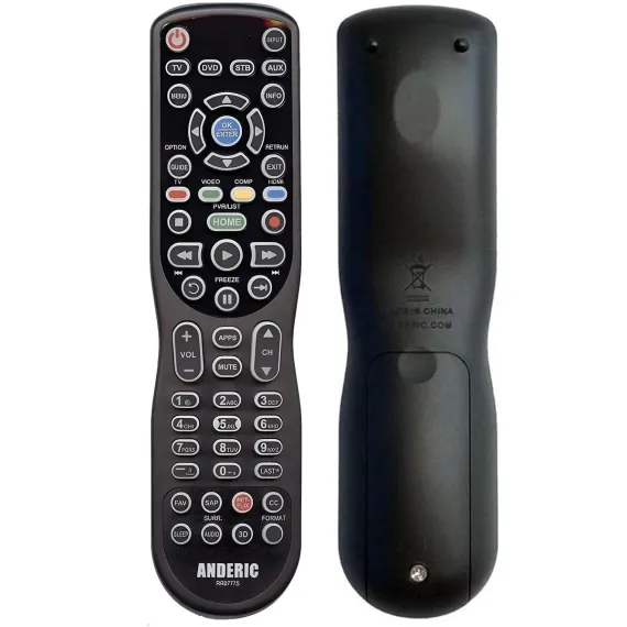 The Anderic RR0777S (model N2QAYB000777S) is a versatile replacement remote control designed for Panasonic TVs and audio/video equipment. Preprogrammed for Panasonic televisions, this remote is ready to use right out of the package with no setup required for compatible models. It features built-in learning capability, a convenient backlight for low-light use, and control for up to four devices, making it a flexible and practical solution for home entertainment setups.