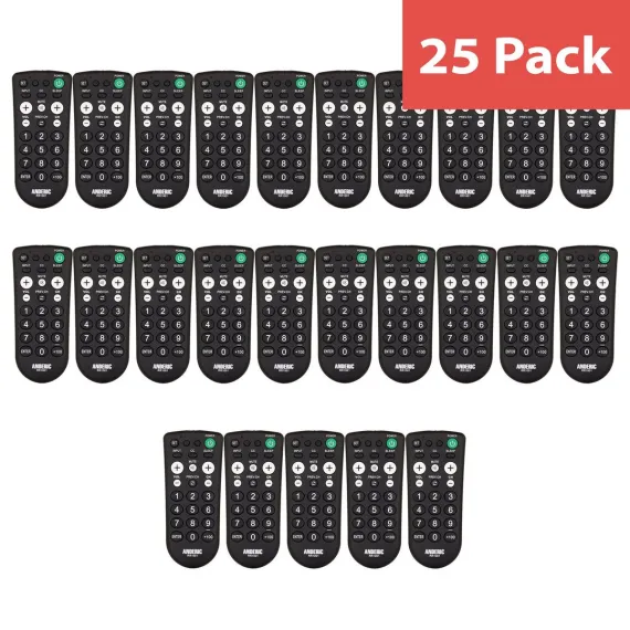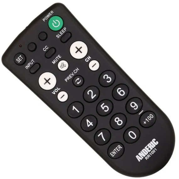 The Anderic Hospitality RR1001 is a TV-only universal remote designed specifically for hospitality environments such as hotels, healthcare facilities, and senior living residences. With its simplified layout and oversized keys, it eliminates unnecessary complexity and provides guests with an intuitive way to control their televisions. Pre-programmed to work immediately with LG and Vizio TVs, the RR1001 also supports most major brands through a quick two-step setup process.