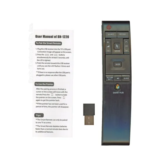 The Anderic RR1220E is a reliable, full-featured replacement remote control that replicates the functionality of original Samsung RF remotes like BN59-01220E and others. This remote includes a USB RF dongle that enables wireless control without requiring line-of-sight, making it an ideal solution for modern Samsung Smart TVs.