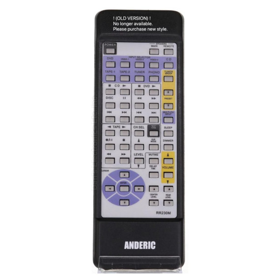 The Anderic RR230M remote control is a reliable replacement for a wide range of original Onkyo and Integra Audio/Video receiver remotes. Designed to work right out of the package, it requires no programming and supports full operation of unified Onkyo AV receivers.