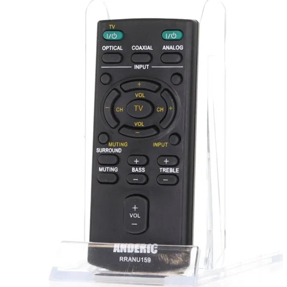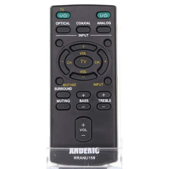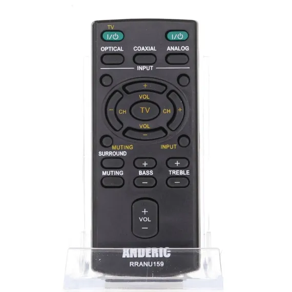 The Anderic RRANU159 remote control is a replica replacement for the original Sony RM-ANU159 remote, designed to operate compatible Sony audio systems and soundbars right out of the package—no programming required. Pre-programmed for Sony audio devices and TVs, it offers convenient access to key functions including POWER, OPTICAL, SURROUND, and standard audio controls.