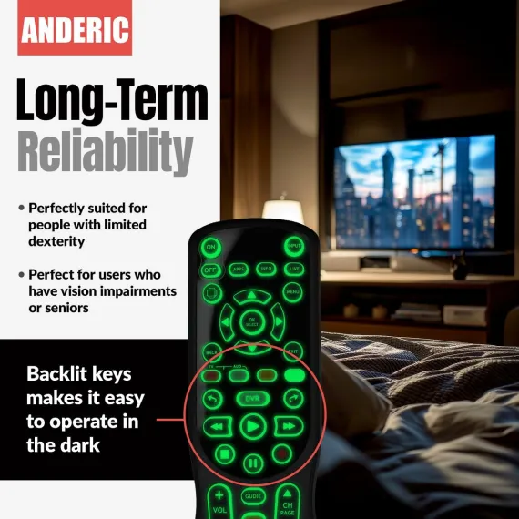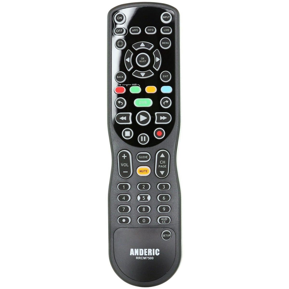 The Anderic RRCM7500 is the perfect replacement for your Channel Master CM7500XRC2 remote. Pre-programmed for Samsung TVs and Channel Master set-top boxes, it offers instant compatibility with no setup needed. Enjoy back-lit keys for easy use in low light, TV programmability, and one-touch macro functions to control multiple devices at once. Simple, reliable, and user-friendly—upgrade to the RRCM7500 for seamless control of your Channel Master DVR now!
