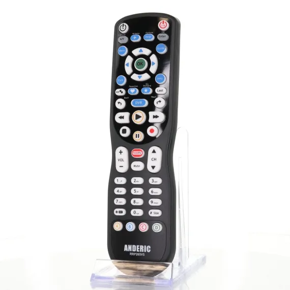 The Anderic RRP265V5 remote is a direct replacement for the Verizon FiOS P265 V5 remote control, offering identical functionality and reliable performance. Designed to work with all Verizon FiOS set-top boxes—including SD, HD, DVR, and 2-device systems—it requires no programming for FiOS devices, making setup quick and effortless. This remote also supports programming to most TV brands, with included instructions for easy configuration.