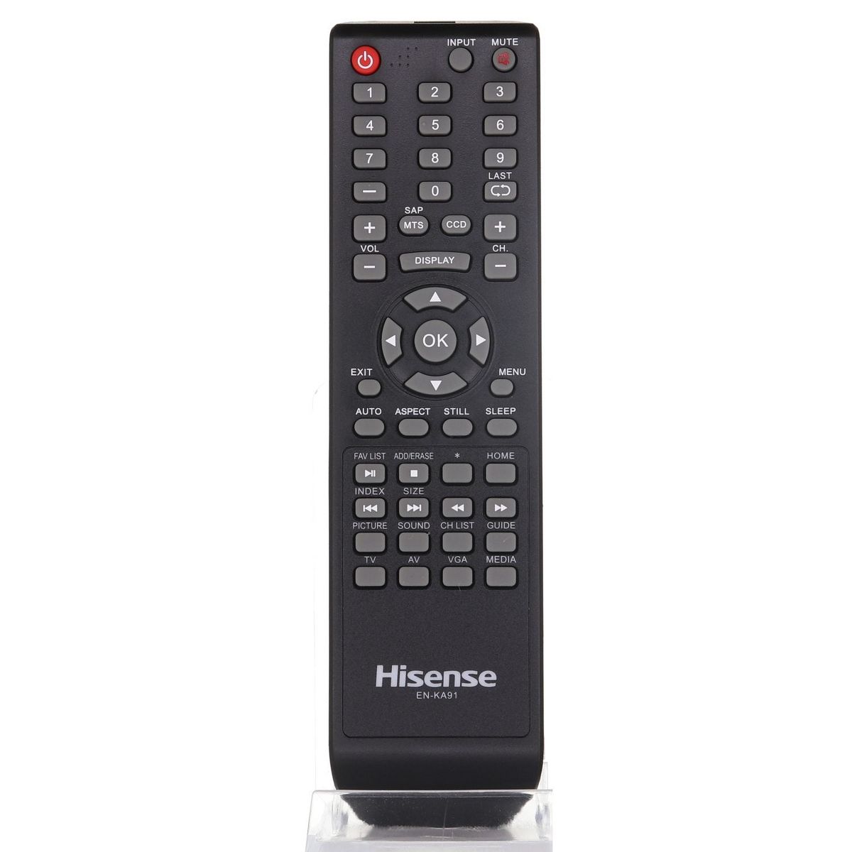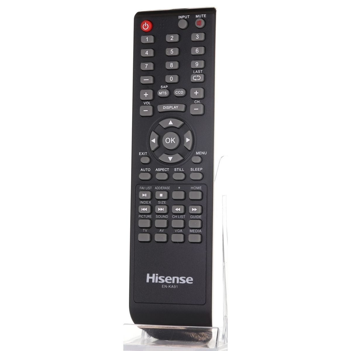 The ENKA91 is a replacement remote designed for Hisense televisions, delivering reliable performance and intuitive control. This standard IR remote features a straightforward button layout that makes navigating channels, adjusting volume, and accessing your TV's core functions effortless. Compatible with select Hisense TV models, it restores full functionality to your entertainment setup when your original remote is lost or damaged.
