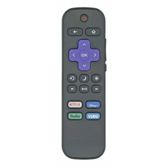 Command your 2021 Hisense Roku TV with the RC-ALIR remote featuring dedicated buttons for Netflix, Disney+, Hulu, and VUDU. Experience responsive infrared control and quick access to your favorite streaming platforms. An essential replacement for seamless entertainment navigation. The remote you receive may have different shortcuts.
