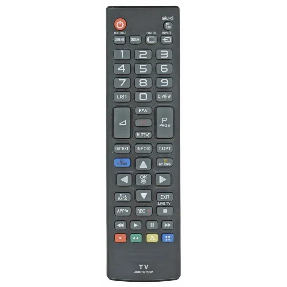 The AKB73715601 is an original remote control engineered for seamless compatibility with select LG television models. This genuine replacement remote delivers reliable performance and intuitive button layout, restoring full access to your TV's features and settings. With its durable construction and responsive controls, it provides the dependable operation you expect from authentic LG components. Ideal for users seeking a direct replacement for lost, damaged, or malfunctioning remotes.